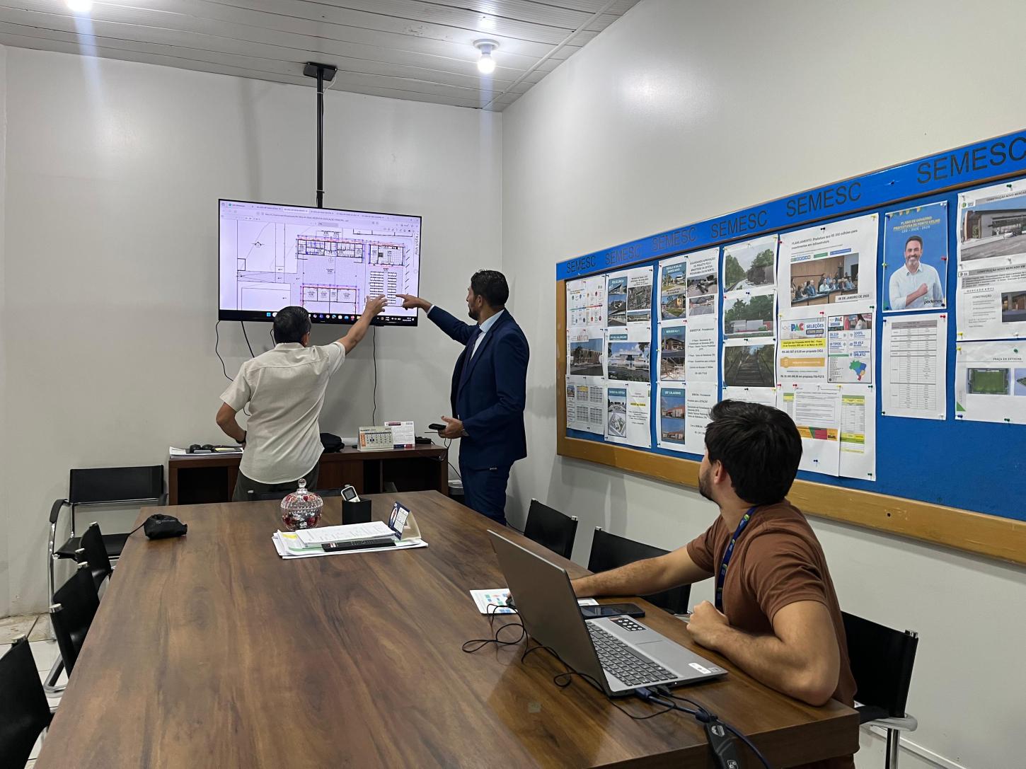 O vereador Márcio Pacele esteve na SMCL para acompanhar de perto o andamento do projeto para a construção do novo refeitório, cozinha e banheiros da Escola José Augusto, localizada no distrito de Extrema, na região da Ponta do Abunã.
